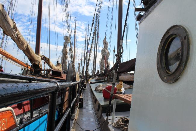 So erreichten wir nach neunstündiger Busfahrt Enkhuizen, luden Reisegepäck und Lebensmittel auf das Schiff , erkundeten die schöne Hafenstadt, bevor das gemeinsame Abendessen im Team zubereitet wurde.