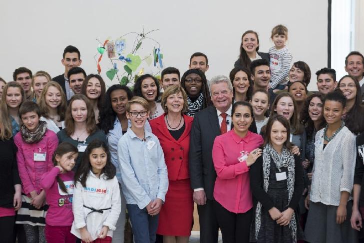 Bundespräsident Joachim Gauck und Daniela Schadt, Schirmherrin von Unicef Deutschland, haben anlässlich des 25.Geburtstages der Kinderrechtskonventionen 50 Jugendliche, die sich besonders für die Kinderrechte einsetzen, eingeladen.