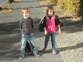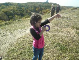 Auf dem langen Weg zum Teufelsberg.Im September haben wir unseren Klassendrachen auf dem Teufelsberg fliegen lassen.