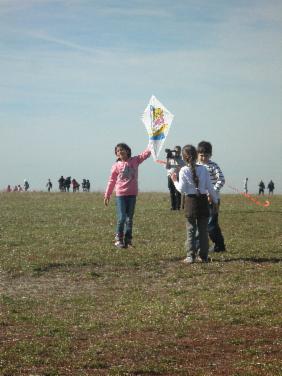 Die Kinder der Lerngruppe 1/2 f lassen ihren Drachen steigen.....
