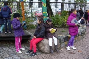 Letzte Vorbereitungen in der Pause Die Jury: Schülerinnen, Lesepatin und Erzieher