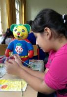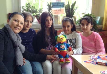 Vier Mädchen aus der Klasse 5a, Damla, Yagmur, Asya und Aysin, haben unter der Leitung von Frau Kader eine blanke Erdbärfigur zu einem „Supererdbären“ gestaltet. Ihr Bär hat unter 150 Bären den 2. Platz belegt und sich den mit 1000 Euro dotierten Gewinnerpreis ergattert.